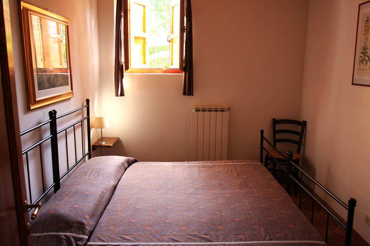 Apartment with view on a large meadow and the valley; ample and comfortable living room with sofa bed; dining and cooking area with old marble sink; two bedrooms with double or twin beds (depending on requirements), joint shower bathroom.